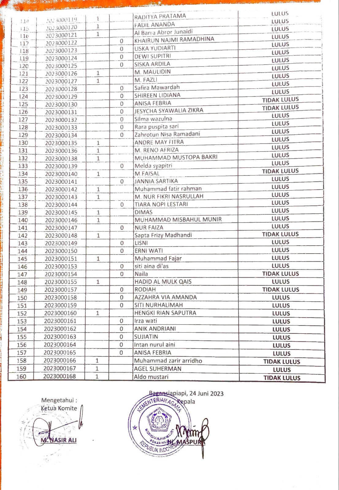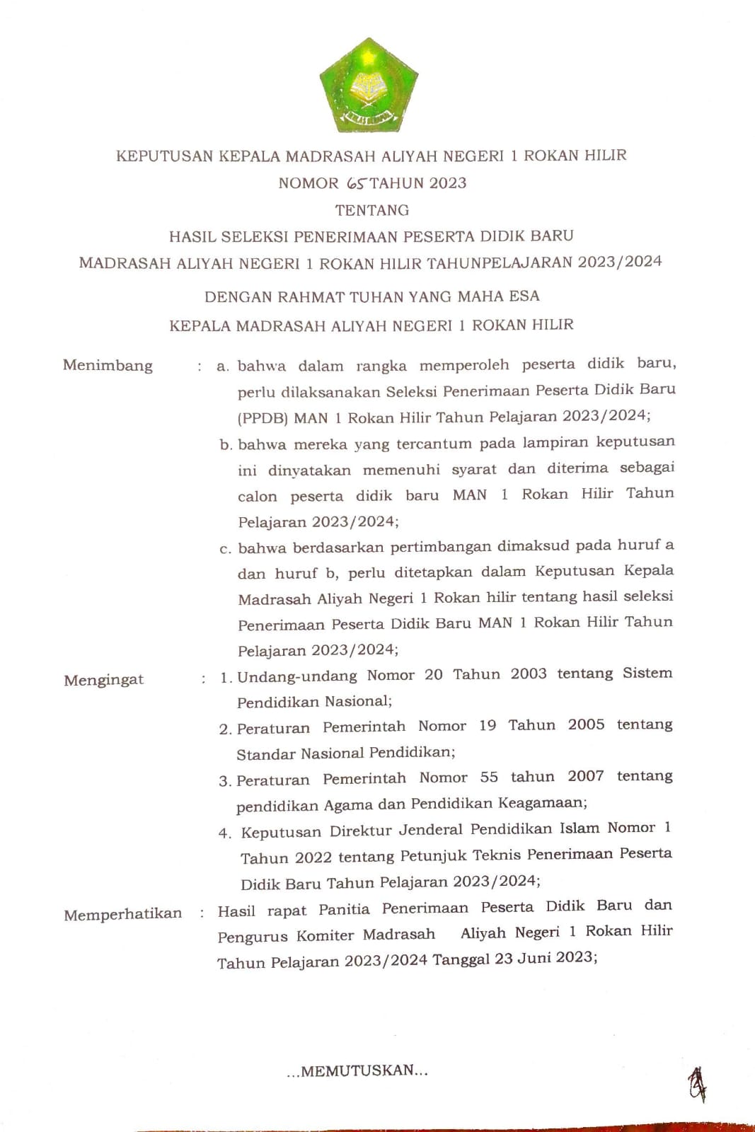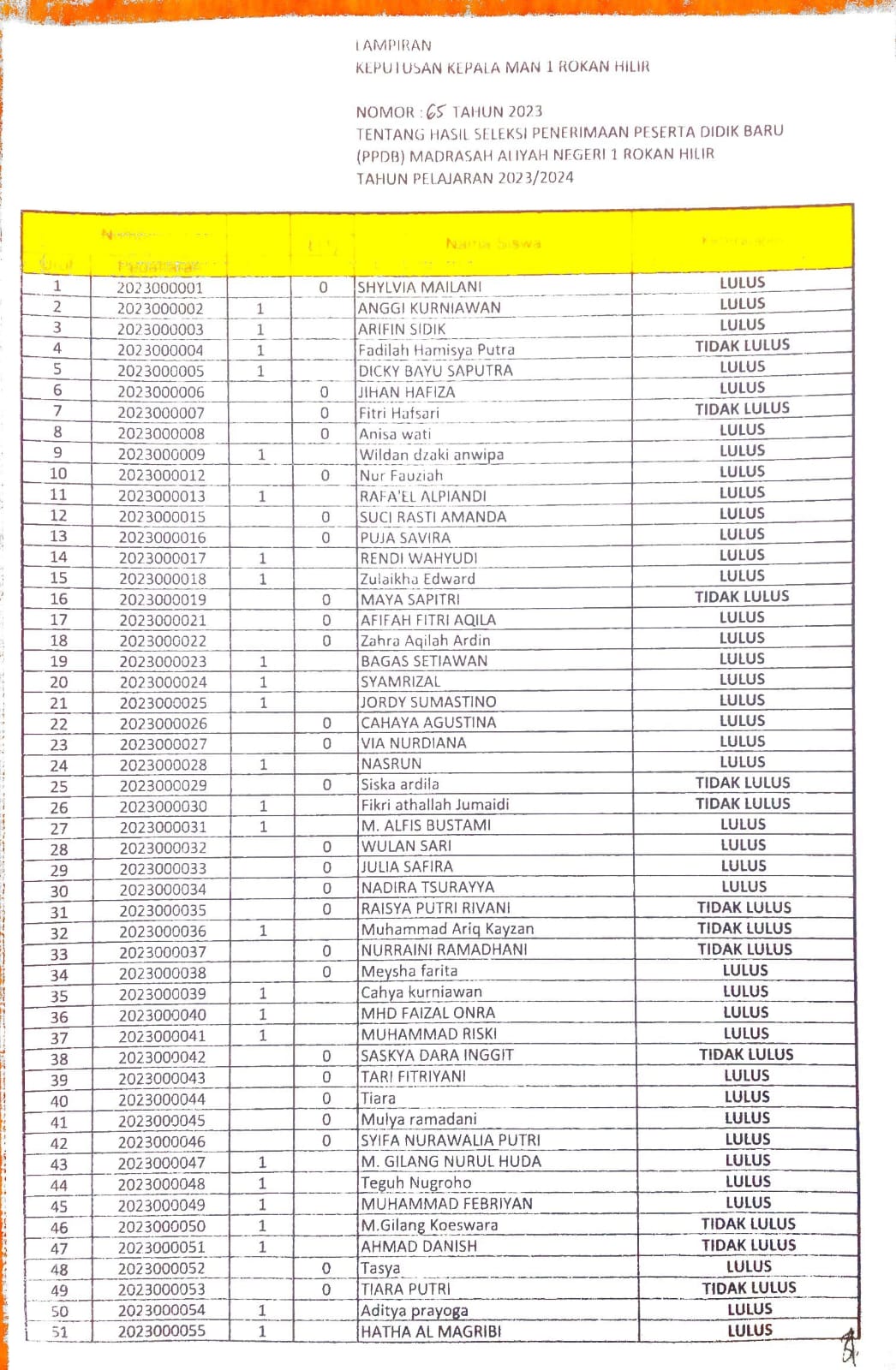 Pengumuman Hasil Seleksi Penerimaan Peserta Didik MAN 1 Rokan Hilir Tahun 2023/2024