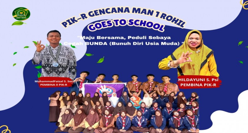 “Goes to School merupakan salah satu program tahunan yang ditaja oleh PIK-R Gencana MAN 1 Rokan Hilir. Melalui tema ‘Maju Bersama, Peduli Sebaya dan Cegah BUNDA (Bunuh Diri Usia Muda)’, kami ingin menyadarkan generasi muda akan pentingnya menjaga kesehatan mental dan menjadi generasi yang berencana terkait masa depan,” ujarnya.